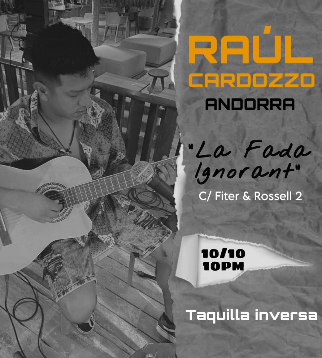 Raúl Cardozo es un cantautor mexicà que fa 3 anys viu a Andorra per primera vegada es pujarà a l’escenari de La Fada per interpretar cançons d’artistes coneguts com Guitarricadelafuente i temes propis. Divendres 10 d’octubre a les 22h / Taquilla Inversa. Entrada Lliure
